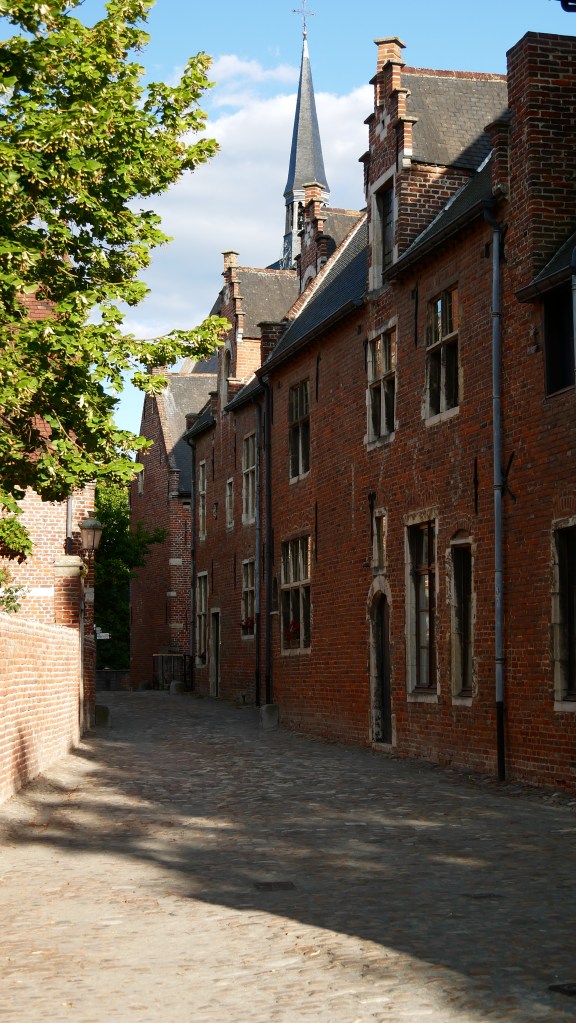 Beginaż w Leuwen położony jest w południowej części miasta. Jest to zespół budynków otoczony murem w skład którego wchodzi Mały i Duży Beginaż. Teraz jest to zamknięta enklawa gdzie mieszczą się mieszkania prywatne, dawniej były tam zlokalizowane kościół, szpital , leprozorium, izolatka dla zakaźnie chorych, stajnie, kurniki, ogrody i łąki. Świadczy to samowystarczalności Begardów w zakresie produkcji żywności oraz zarobkowania poprzez świadczenie usług i sprzedaży płodów rolnych. Begardzi w przeciwieństwie do ,,kadry,, kościoła utrzymywali się z pracy własnych rąk i jeszcze pomagali innym. Teren Beginazu to cichy , bardzo spokojny zakątek miasta , mimo sobotniego popołudnia było tam pusto. coś co kiedys determinowało zabudowę dzisiaj stanowi wspaniały kontemplacyjny labirynt uliczek i kanałów otoczonych średniowiecznymi budynkami. Było pięknie. Po Beginażu w Brugii , który raczej nie wywarł na Nas wrażenia , ten w Leuven jest bardzo wysoko na liście miejsc niezwykłych.