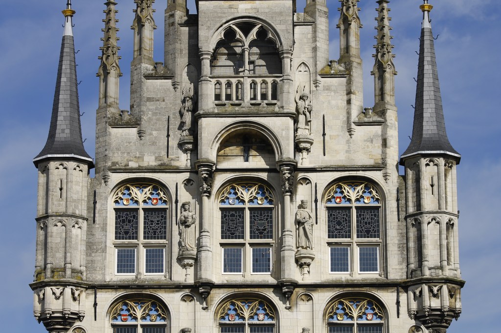 Ratusz w Goudzie to ,,perełka,, architektury i wizytówka Niderlandów. Jednym z powodów jest jego niezaprzeczalne piękno , a drugim to ze zbudowano go w mieście znanym od setek lat z produkcji sera określanego od nazwy miasta serem gouda. Styl budowli nawiązuje do ratuszy flamandzkich epoki gotyku. Miasto Gouda uzyskało prawa miejskie w 1272 roku i słynie z produkcji sera i fajek. Targi serowe gdzie uczestnicy ubrani w tradycyjne stroje inscenizują jak handluje się serami odbywają się od kwietnia do października w każdy czwartek rano. Ser Gouda był chyba pierwszym produktem o konsekwentnie stałej kontroli jakości i ważonym pod nadzorem rady miejskiej w miejskiej wadze. Zamieszczam poniżej kilka zdań o historii ratusza raczej luźno przetłumaczone z holenderskiej wersji Wikipedii z uwagi na tym ,że polski wpis jest niezbyt obszerny.