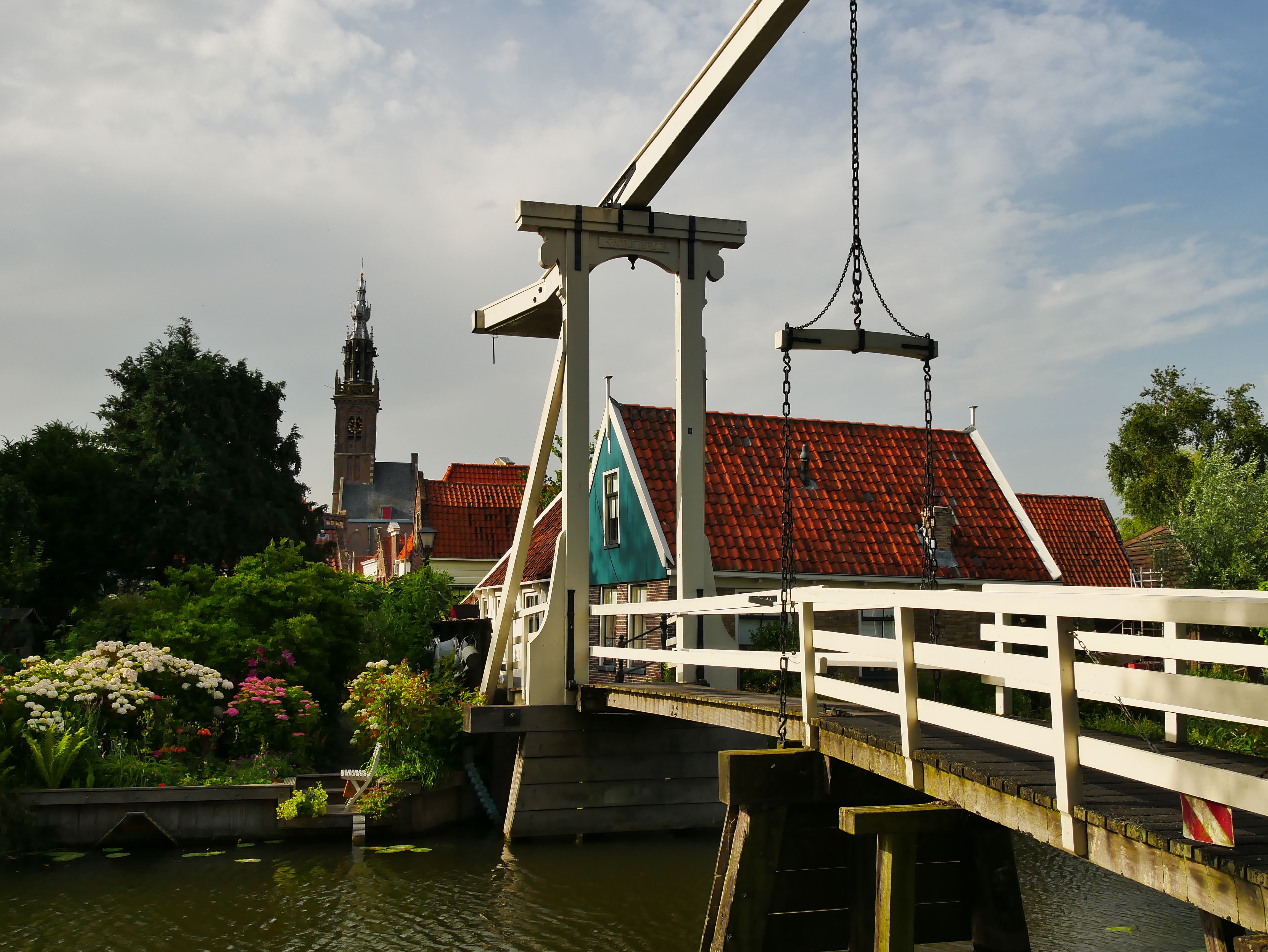 Edam – każdy chyba kojarzy tę nazwę : ) miasto znane z warzenia sera od jego nazwy znanego jako Edamski. Miasto powstało przy ujściu rzeki Ije do morza wewnętrznego Zuiderzee. Dzięki temu położeniu miasto znane było z handlu serem i rybołówstwa. Strategiczne położenie oprócz ekonomicznych korzyści przynosiły też korzyści polityczne w postaci wielu przywilejów. Miasto istnieje prawdopodobnie od momentu powstania tamy czyli w okolicach 1230 roku. Natomiast prawa miejskie otrzymało z rąk hrabiego Willema V w roku 1357 w czasie jednej z wielu wojen wewnętrznych. Hrabia za pomocą tej specyficznej ,,marchewki,, chciał uzyskać poparcie mieszkańców miast , prawdopodobnie chodziło o szeroko rozumiany sponsoring w zbożnej walce. Miasto jest niewielkie , liczy mniej niż 7000 mieszkańców. Słynie z targów serowych odbywających się w lipcu i sierpniu. Spacerując ciasnymi uliczkami trudno sobie wyobrazić że było jednym z kluczowych portów handlowych Zuiderzee. Edam żyje w cieniu pobliskiego Volendam będącego gwarnym rojowiskiem ludzkim z uwagi na nadbrzeżną promenadę i spory port jachtowy. Dwukrotnie odwiedziliśmy Edam i jest małe ciche spokojne siedlisko z terapeutyczną wręcz atmosferą. Miasto trwa w granicach wytyczonych przed wiekami i raczej nie zanosi się na drastyczną zmianę tego stanu. Edam jest całkowitym przeciwieństwem Zaanse Schans. Jeśli już ktoś chce zobaczyć prawdziwe Niderlandy to raczej Edam jest ich wizytówką.