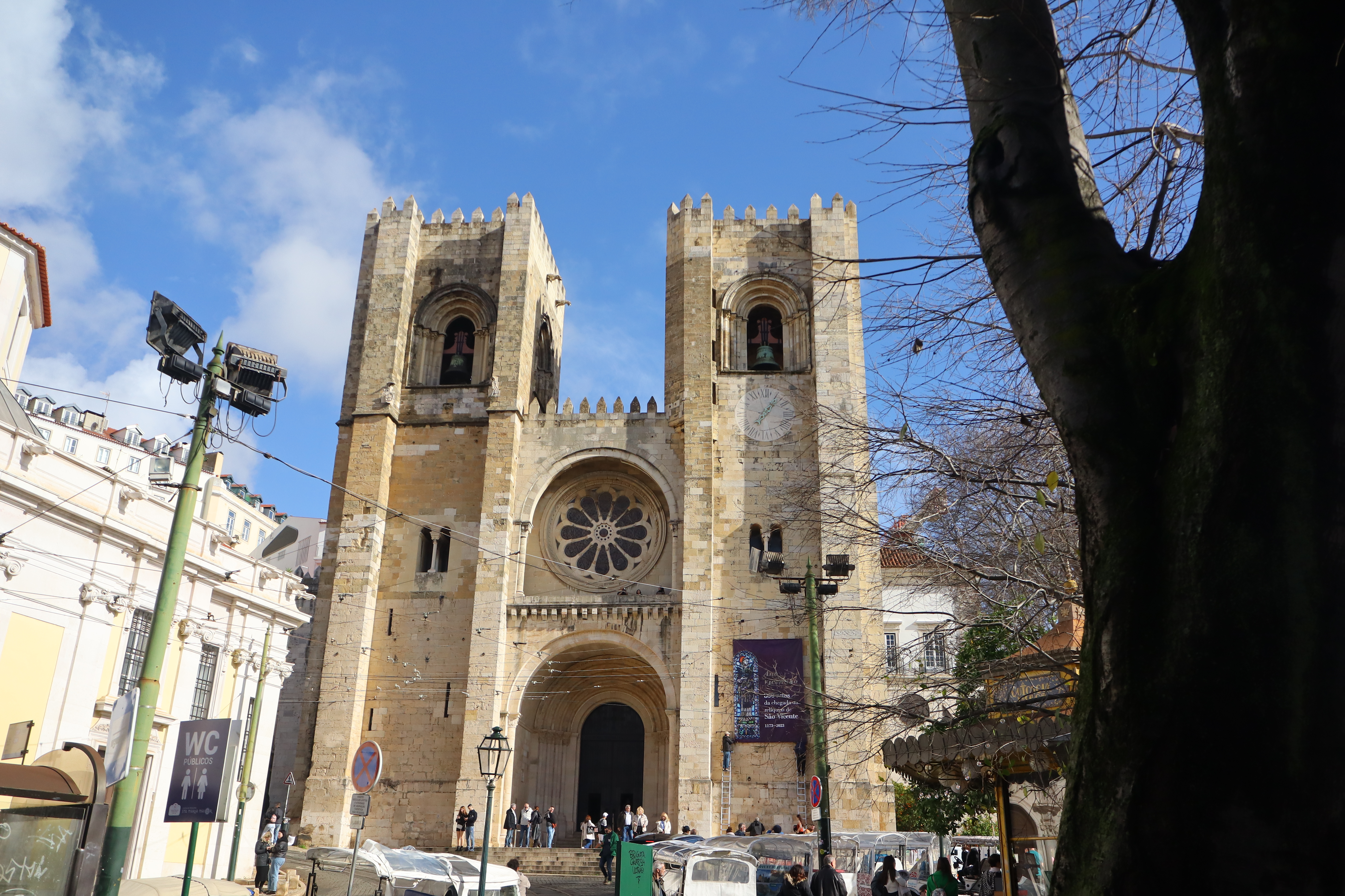 Katedra Se Patriarcal– zbudowana w roku 1150 w miejscu gdzie znajdował się mauretański meczet i w celu upamiętnienia wyzwolenia spod władzy Maurów. Zbudowano ją w stylu romańskim na planie krzyża łacińskiego z trzema nawami. W portalu uwagę zwraca witrażowa rozeta. W XVIII wieku wnętrze przebudowano w stylu rokokowym. Byłem trochę zawiedziony , na zdjęciach w folderach katedra Se jest pięknym kościołem w malowniczej Alfamie obok którego mozolnie wdrapują się pod górę rustykalne tramwaje legendarnej linii 28. Nic takiego, okolice katedry pełne różnego rodzaju tuk-tuków, taksówek, stylizowanych na retro – automobile elektrycznych autek i tłumy ludzi. Mimo to warto bo wnętrze katedry skrywa wiele ciekawych zabytków.